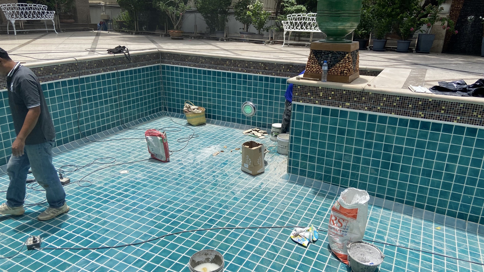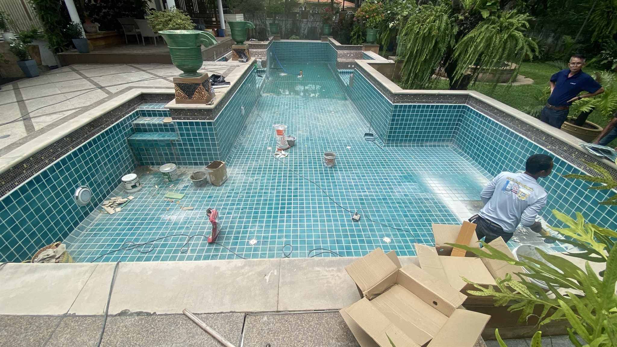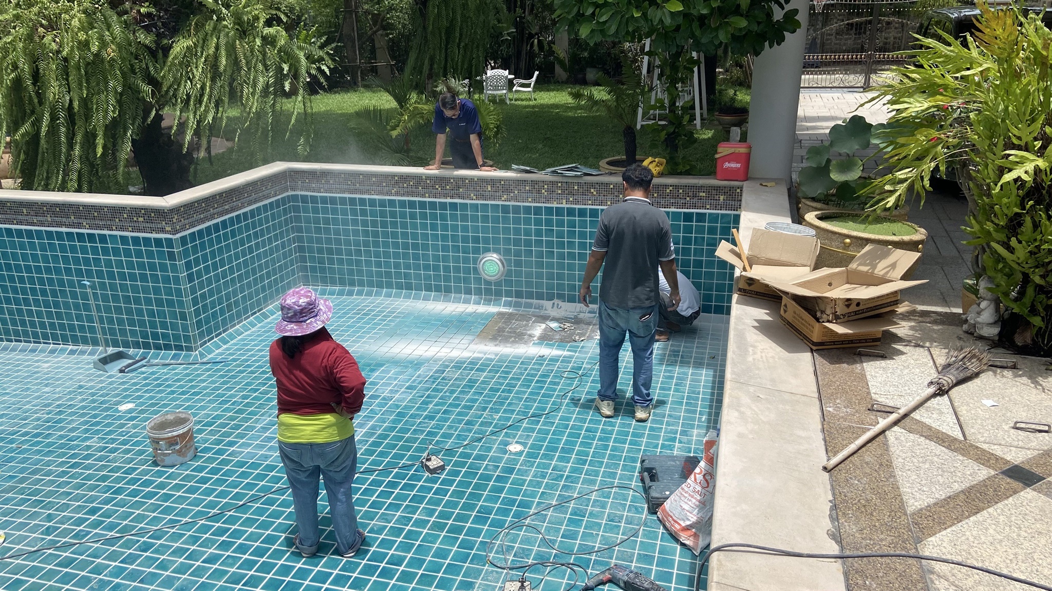 งานซ่อมกระเบื้องสระว่ายน้ำ หมู่บ้านปัญญารามอินทรา